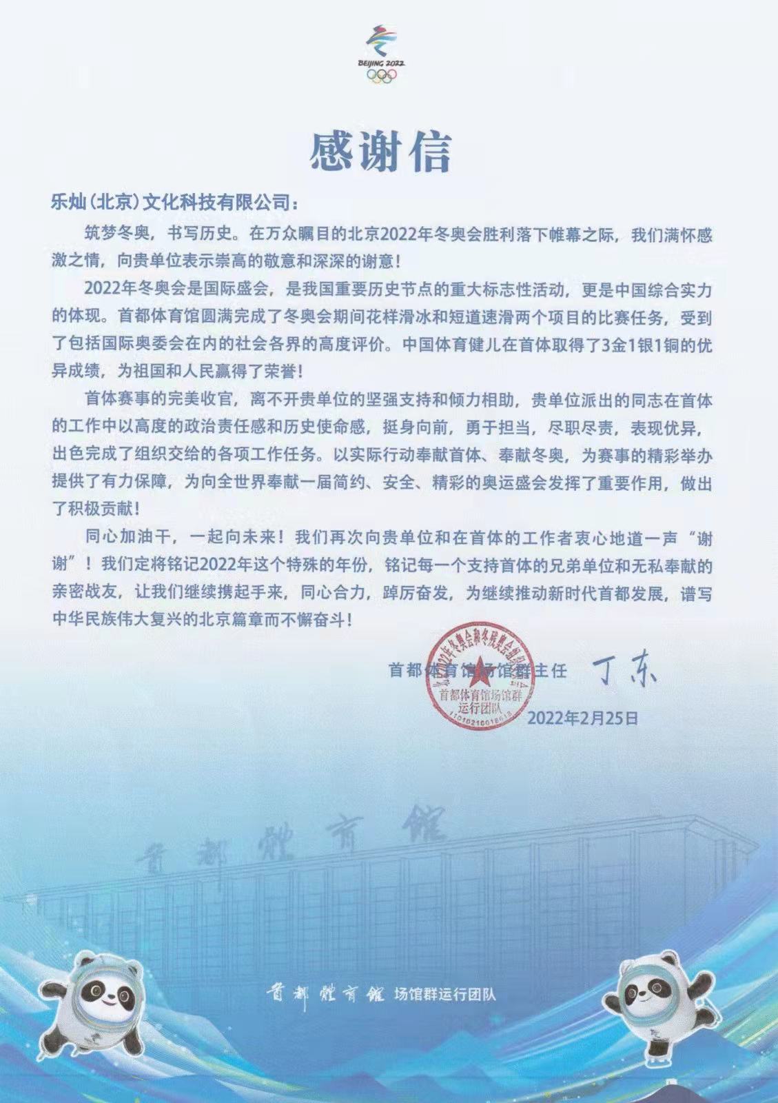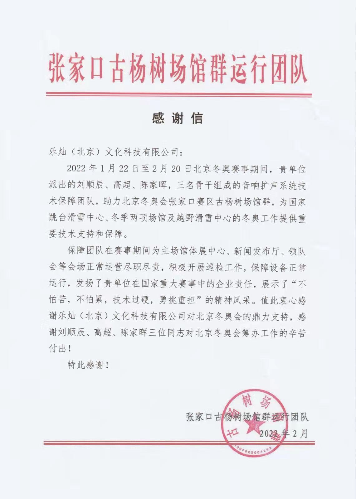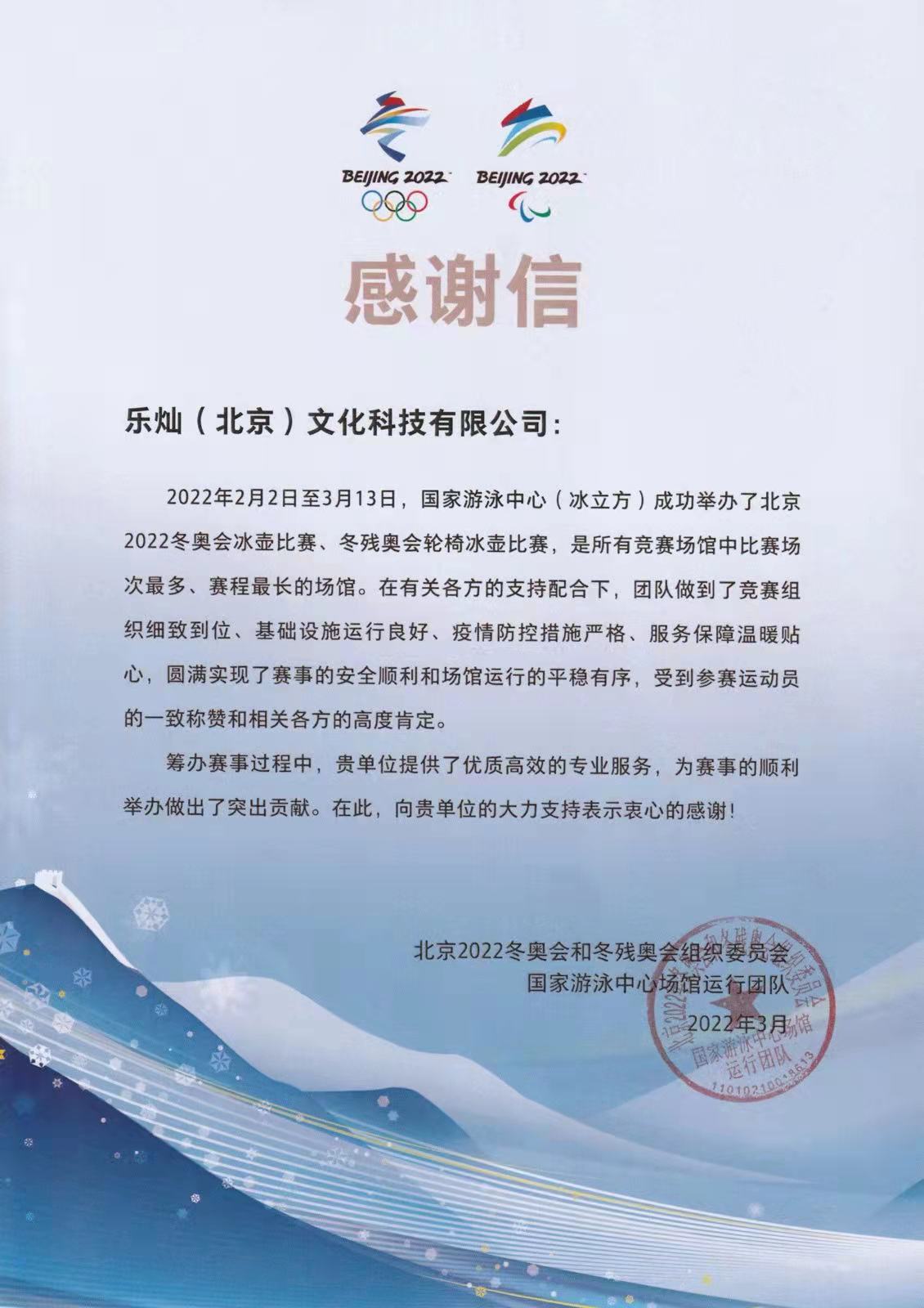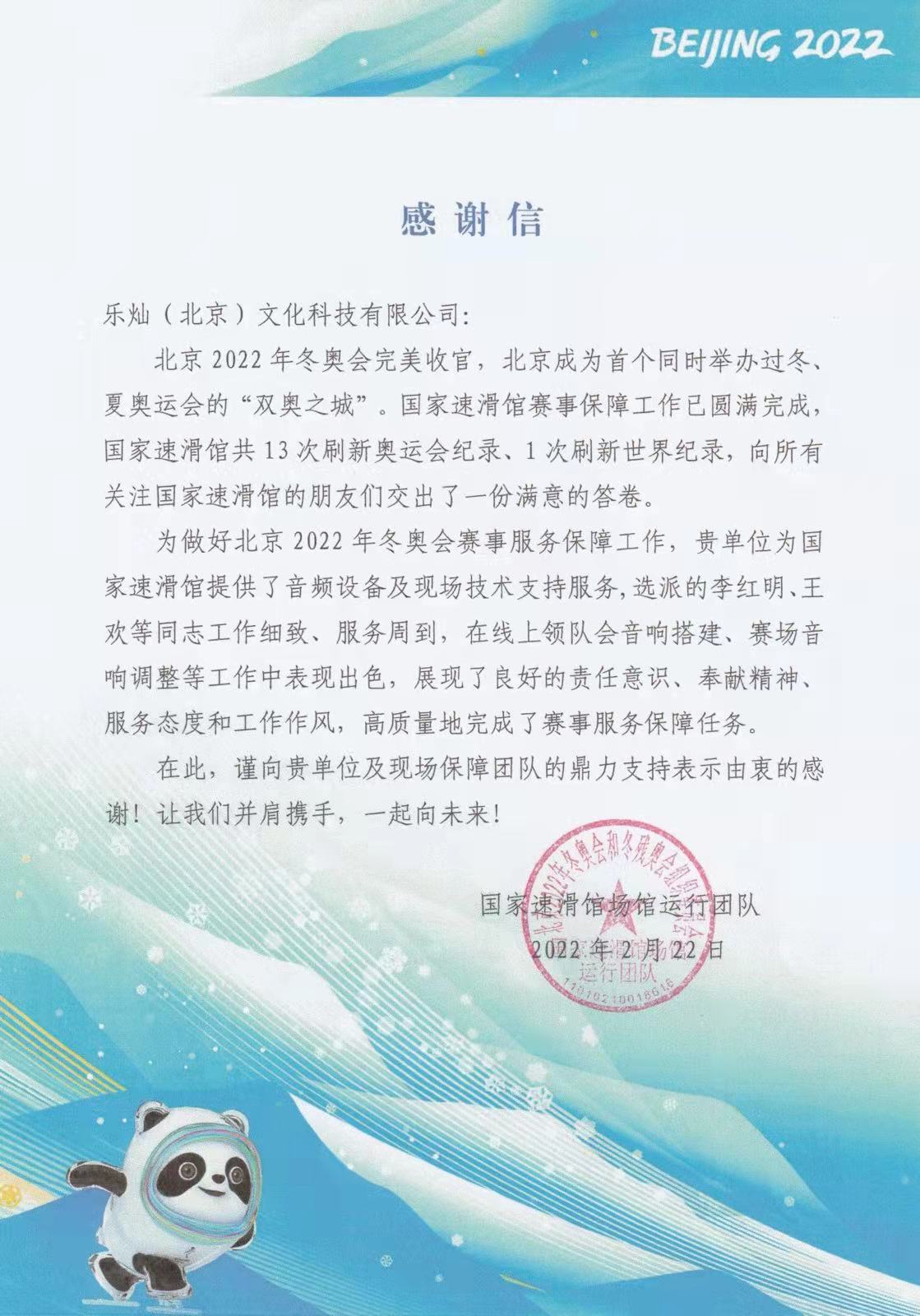 2022年3月13日,随着冬残奥会圆满落幕,中国音像与数字出版协会音视频工程专委会(以下简称:专委会)会员单位——乐灿(北京)文化科技有限公司牢记初心使命,勇于担当作为,以专业的技术实力、良好的责任意识、高效的工作作风、优质的服务水平和无私的奉献精神,高质量完成北京2022年冬奥会和冬残奥会赛时的音视频技术服务保障工作,为场馆顺利运行和赛事成功举办,贡献出了自己力量。