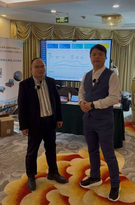 北京中天孚达智能电子有限公司的鲁悦对该公司无纸化会议系统进行介绍,鲁总介绍:无纸化会议系统已经不仅仅是“把文件放到屏幕上”那么简单,它已经演变成一套集成了音视频、中控管理、信息安全和协同办公的智能交互系统。只要是需要频繁开会、涉及大量文档阅读、对信息安全有要求,或者需要进行快速决策的场所,都是无纸化会议系统的适用场景。该公司是一家典型的“小而精”的科技型公司。它依托“龙观飞鑫”品牌,在无纸化会议这一细分赛道上,通过“硬件+软件+AI”的结合,为政府、企事业单位提供智能化的会议解决方案
