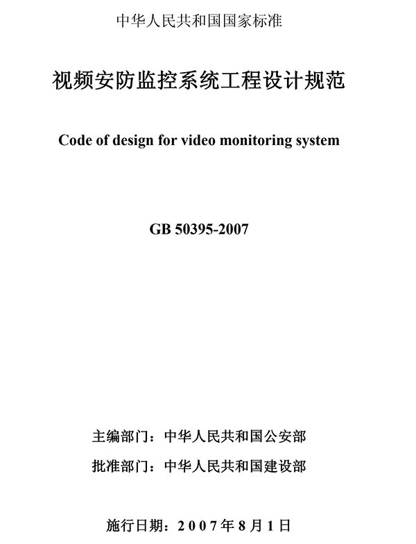 GB 50395-2007 视频安防监控系统工程设计规范