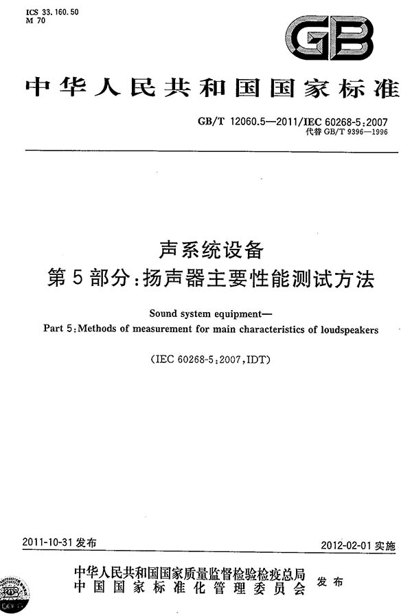 GBT 12060.5-2011 声系统设备 第5部分:扬声器主要性能测试方法