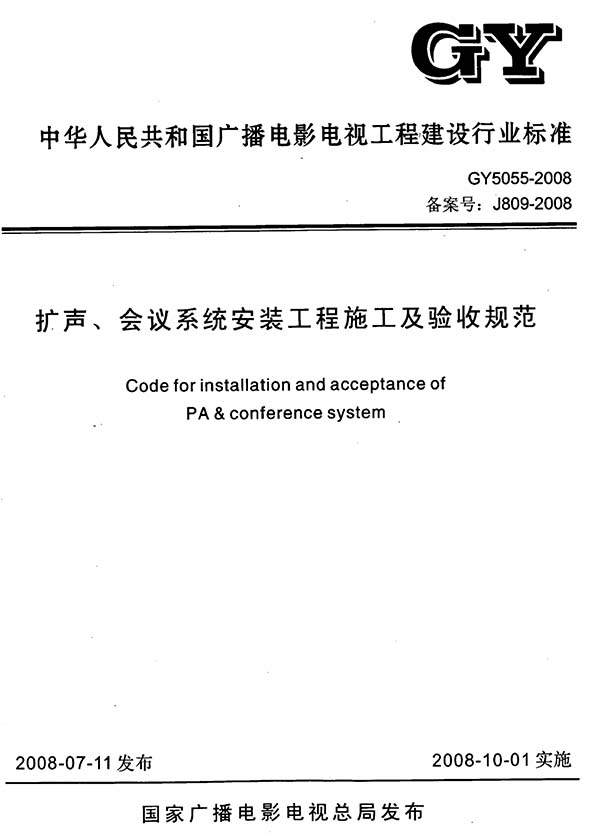 GY 5055-2008 扩声、会议系统安装工程施工及验收规范