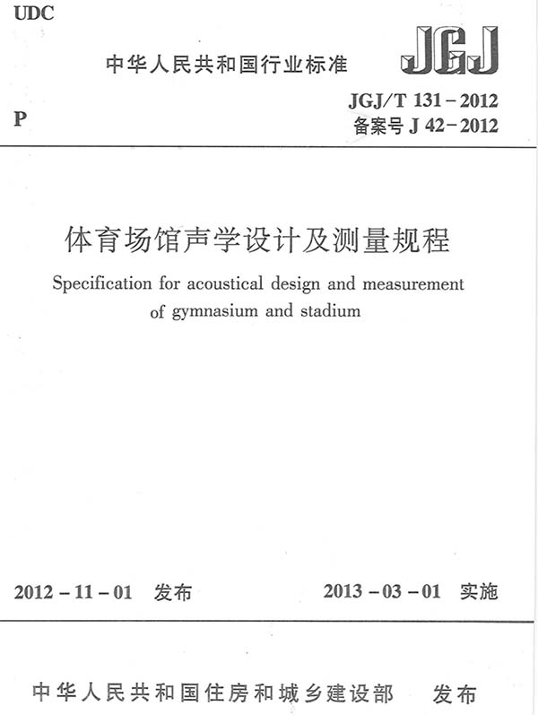 JGJT 131-2012 体育场馆声学设计及测量规程